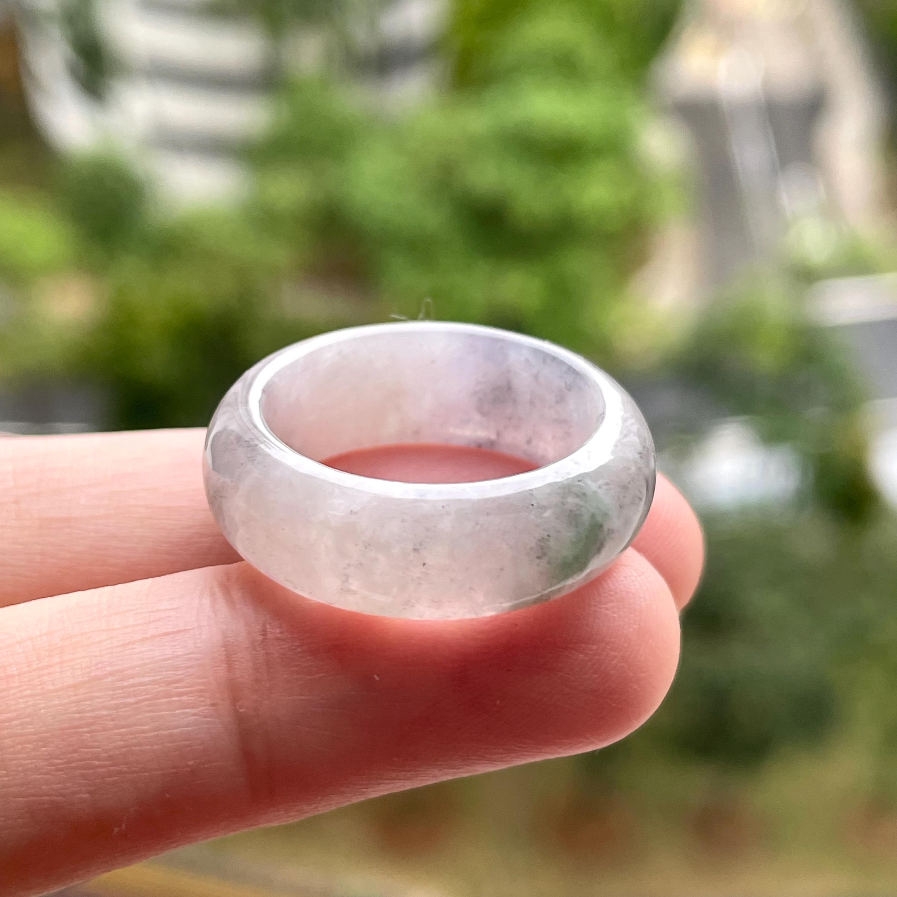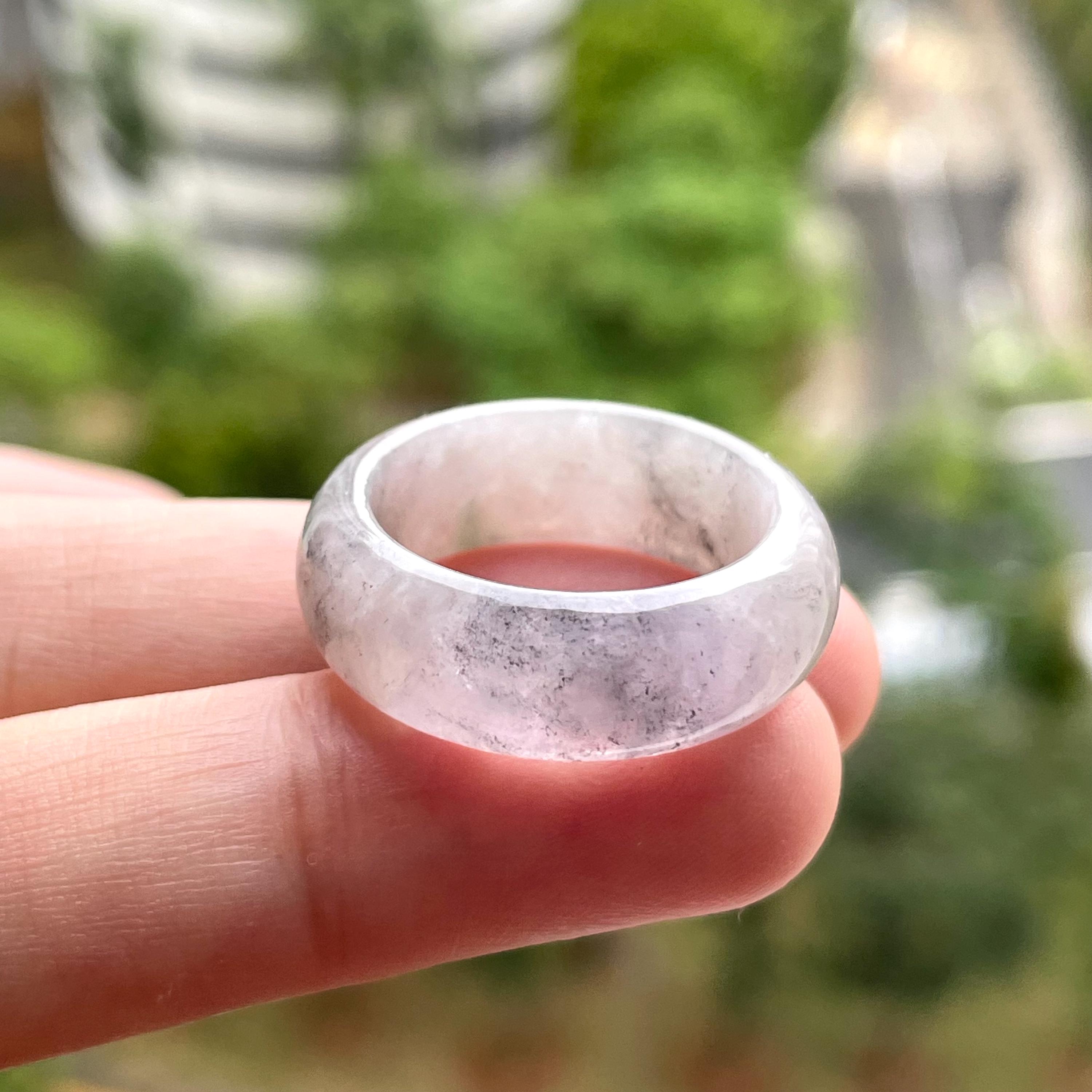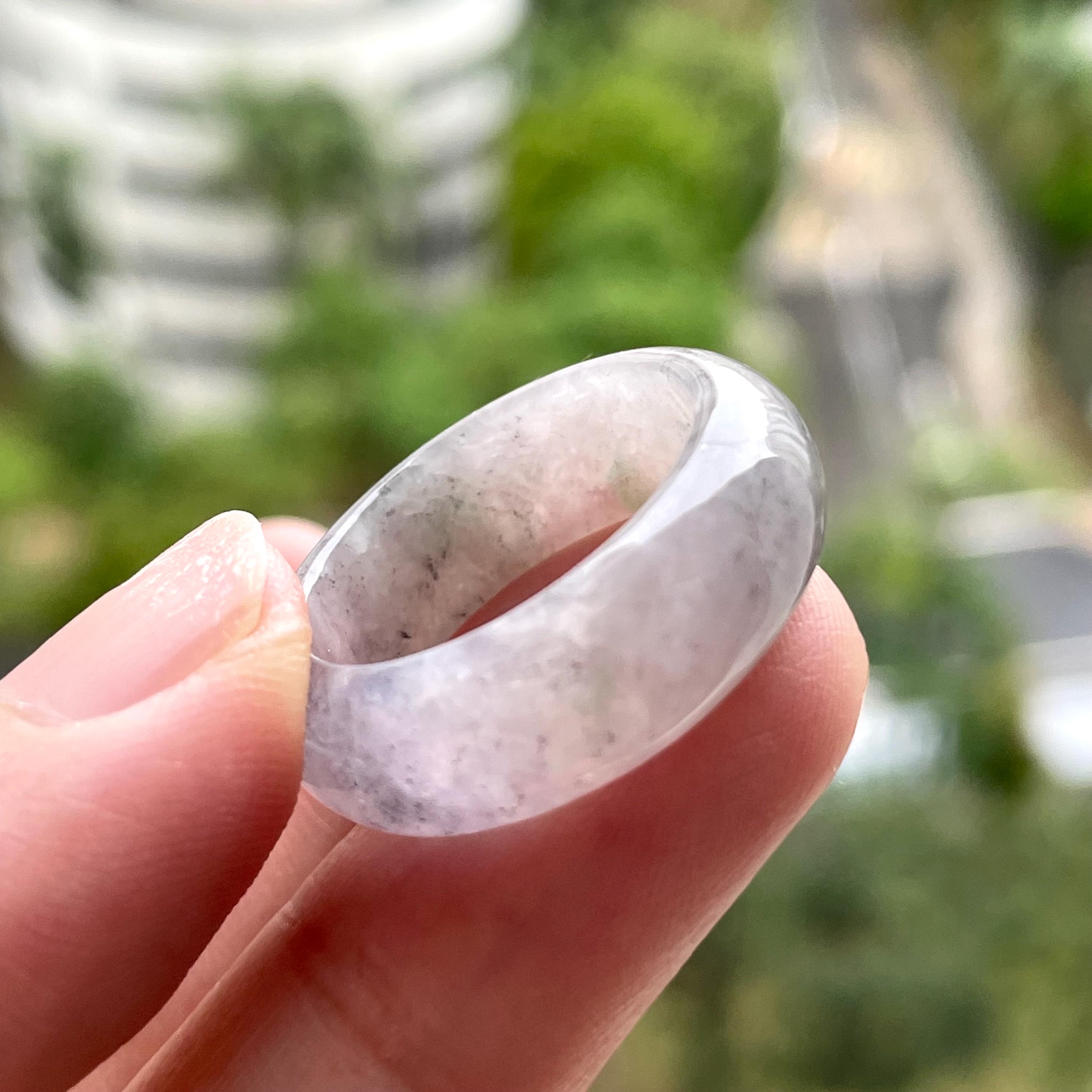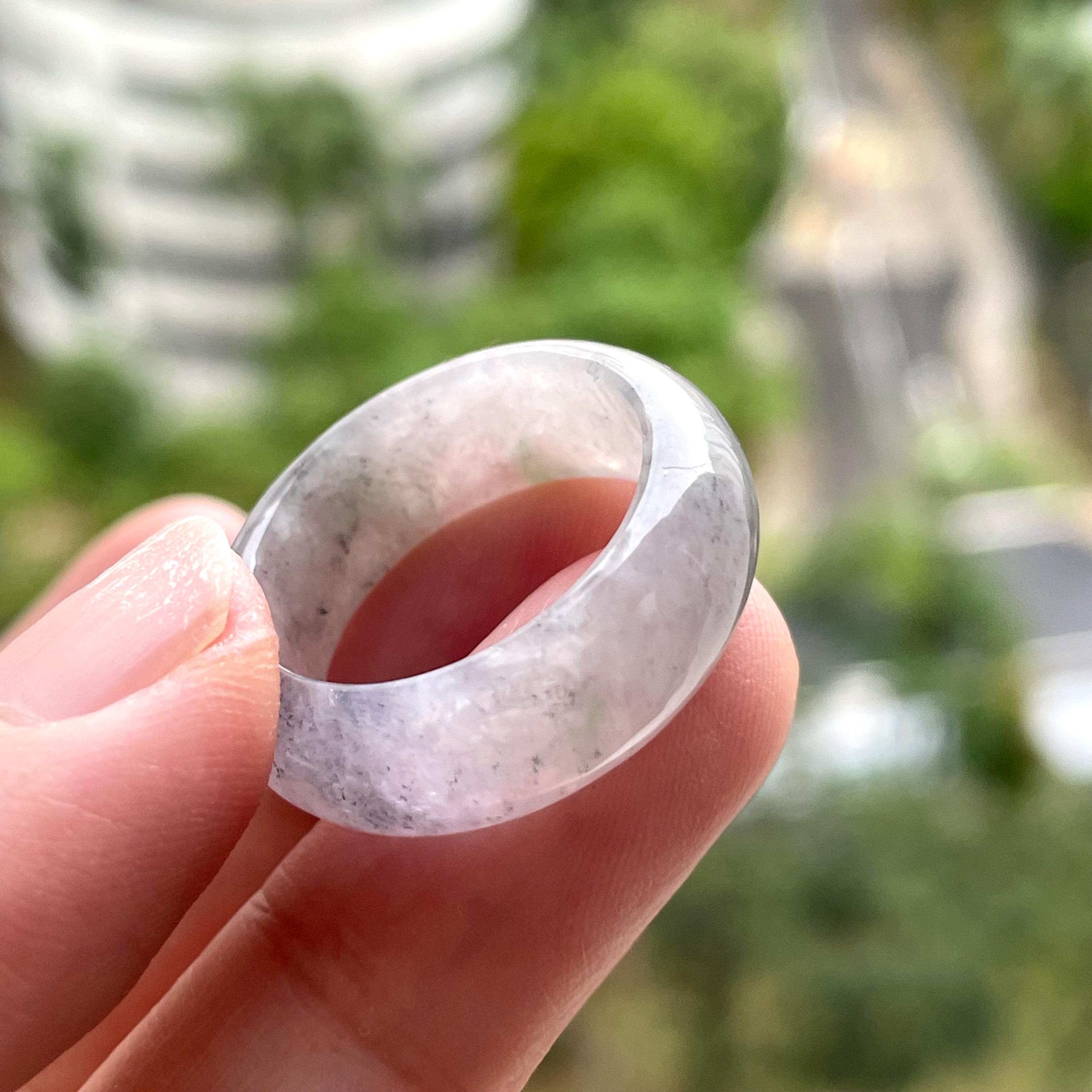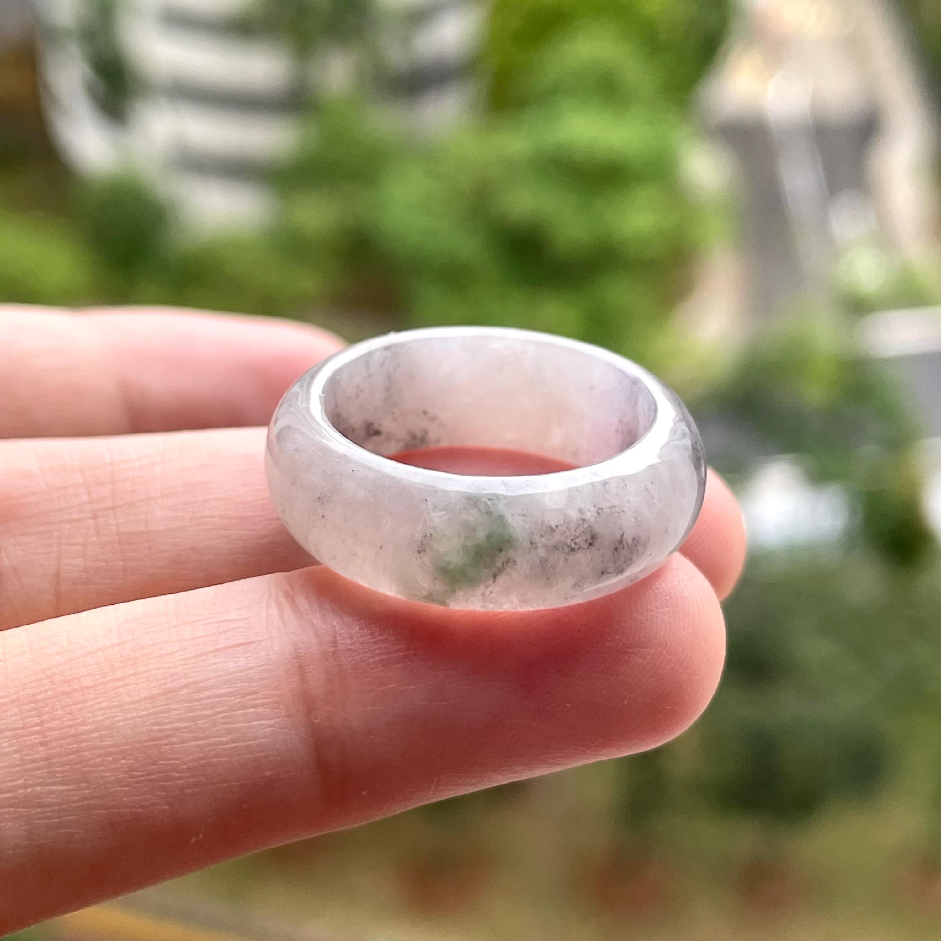 β’ The ring is made with untreated, unheated and undyed jadeite jade from Burma which is categorised as Authentic Type A Jadeite. The main base color is translucent off-white with sprinkled black sesame (natural iron deposit) with a touch of light apple green which enhances the beauty and uniqueness of the rings.