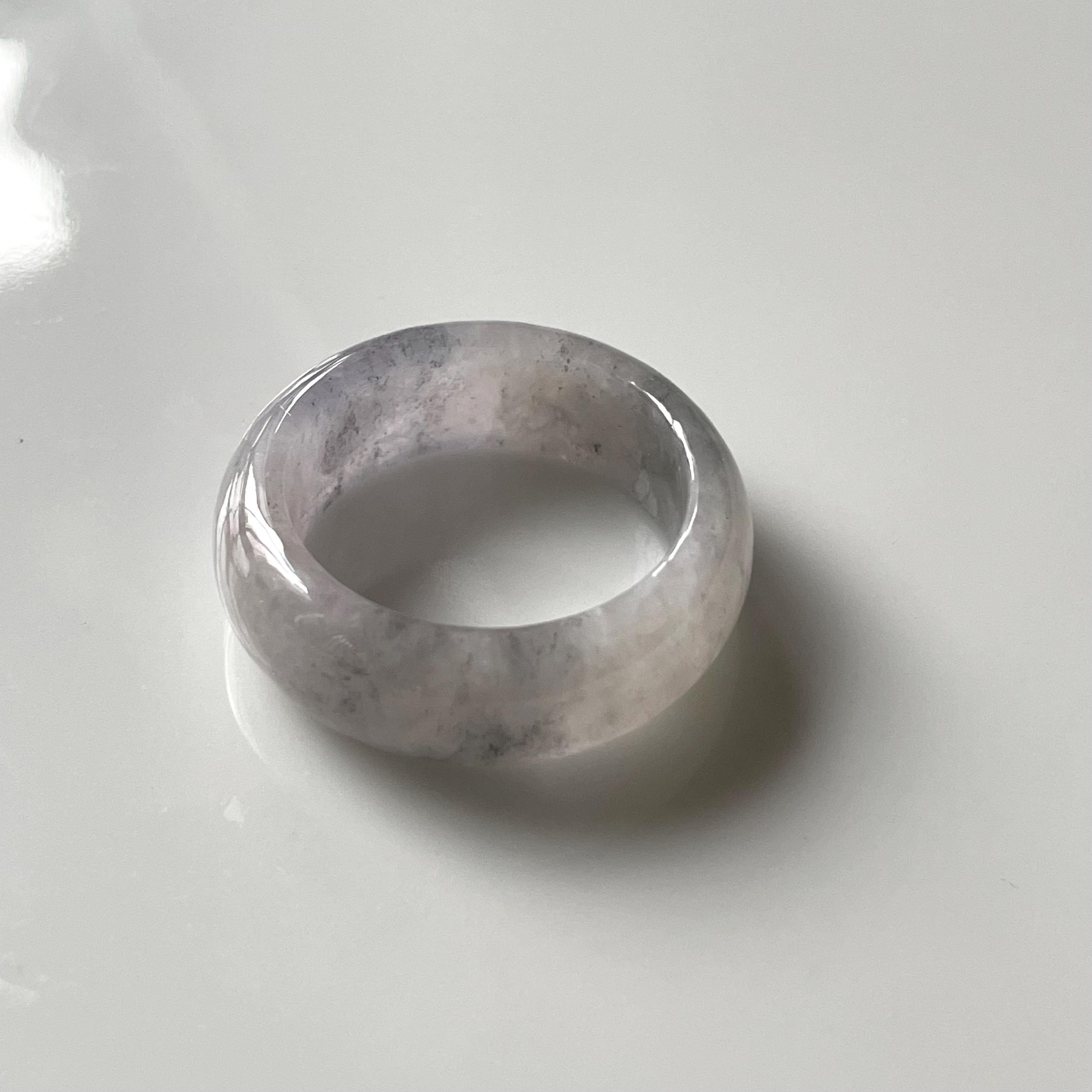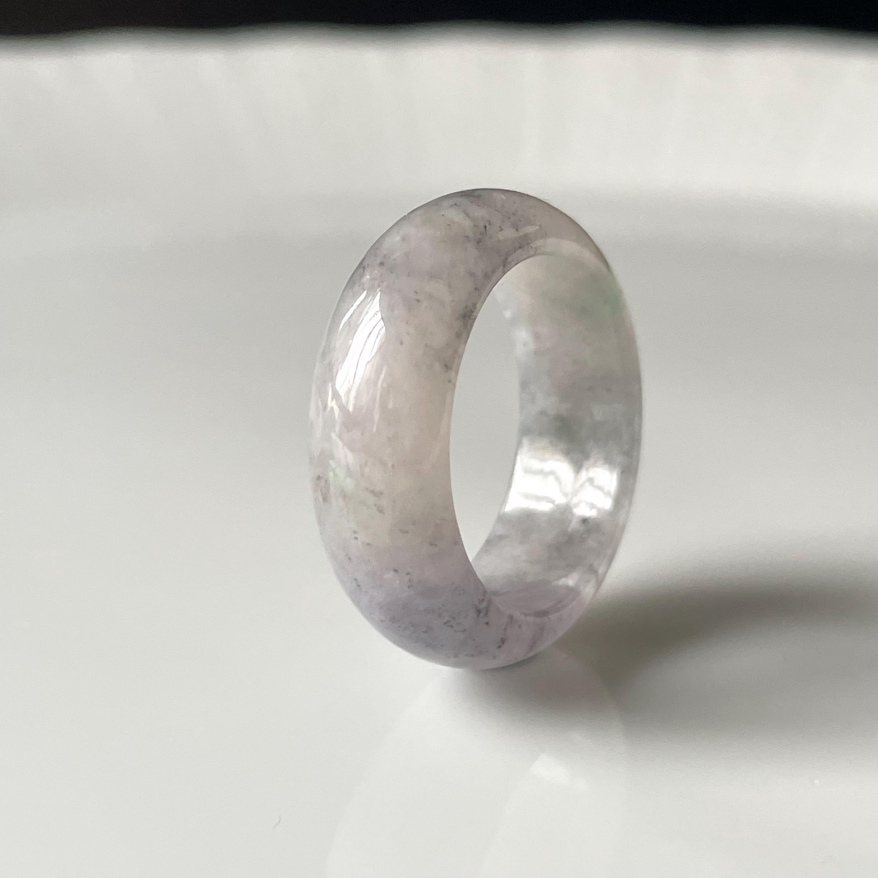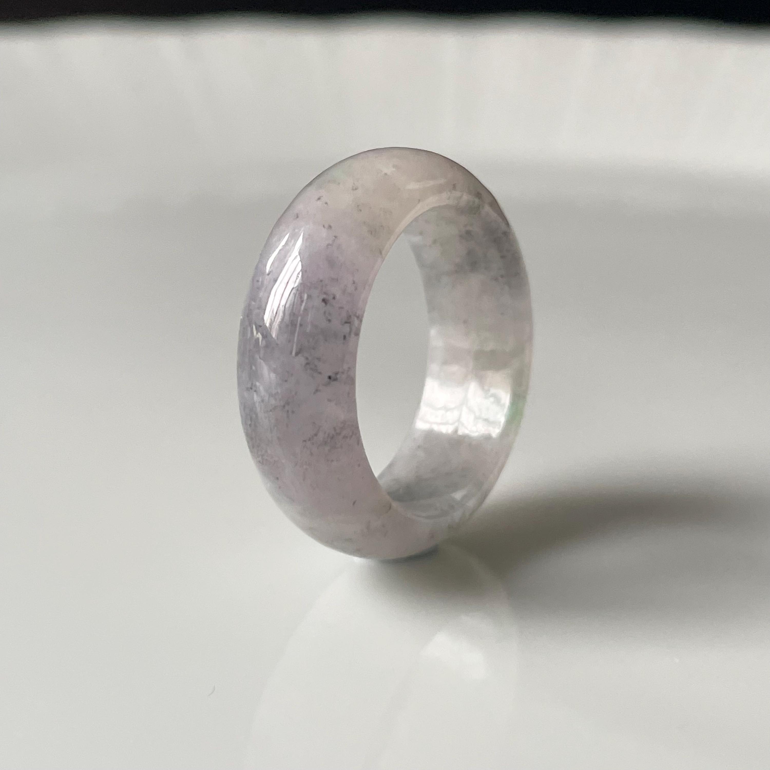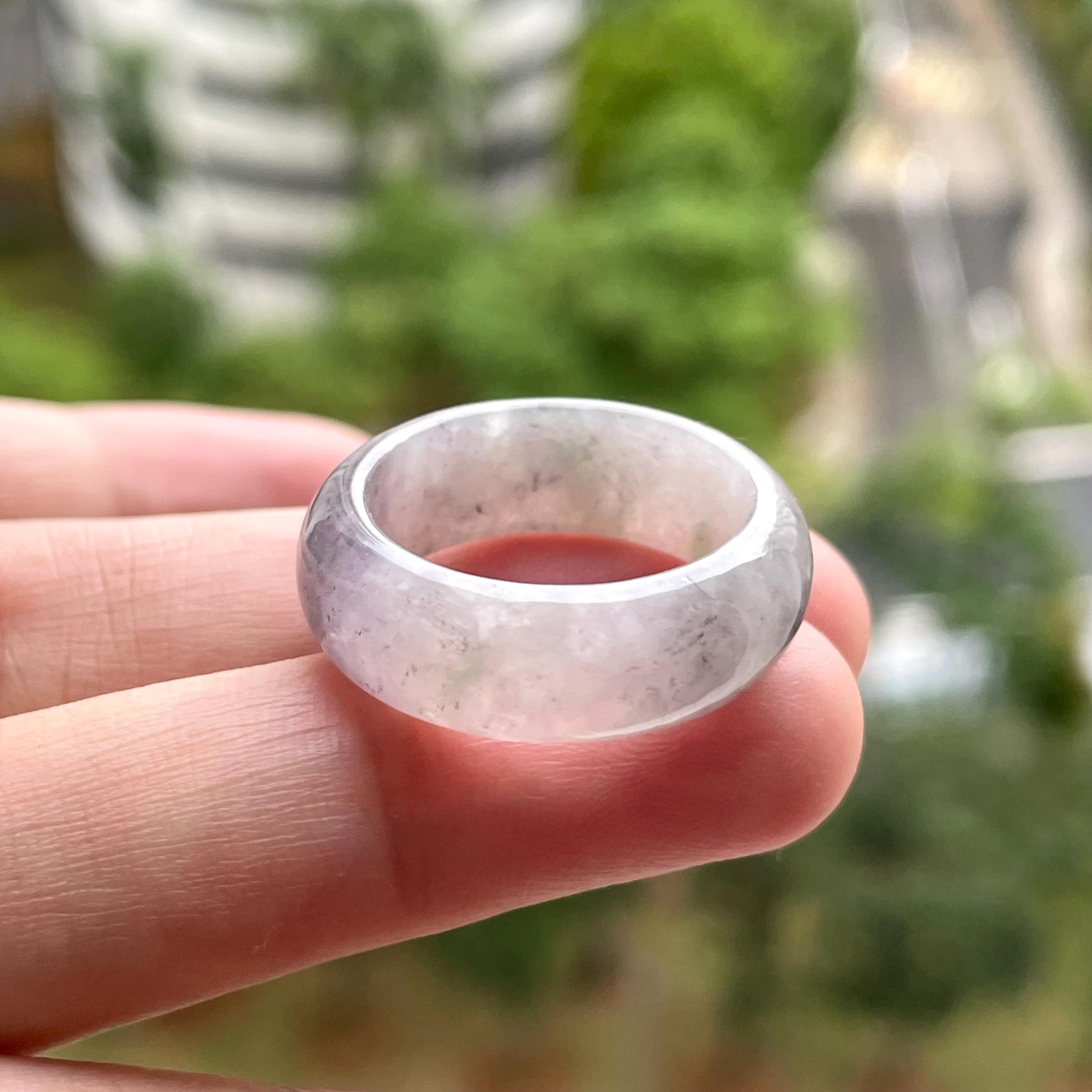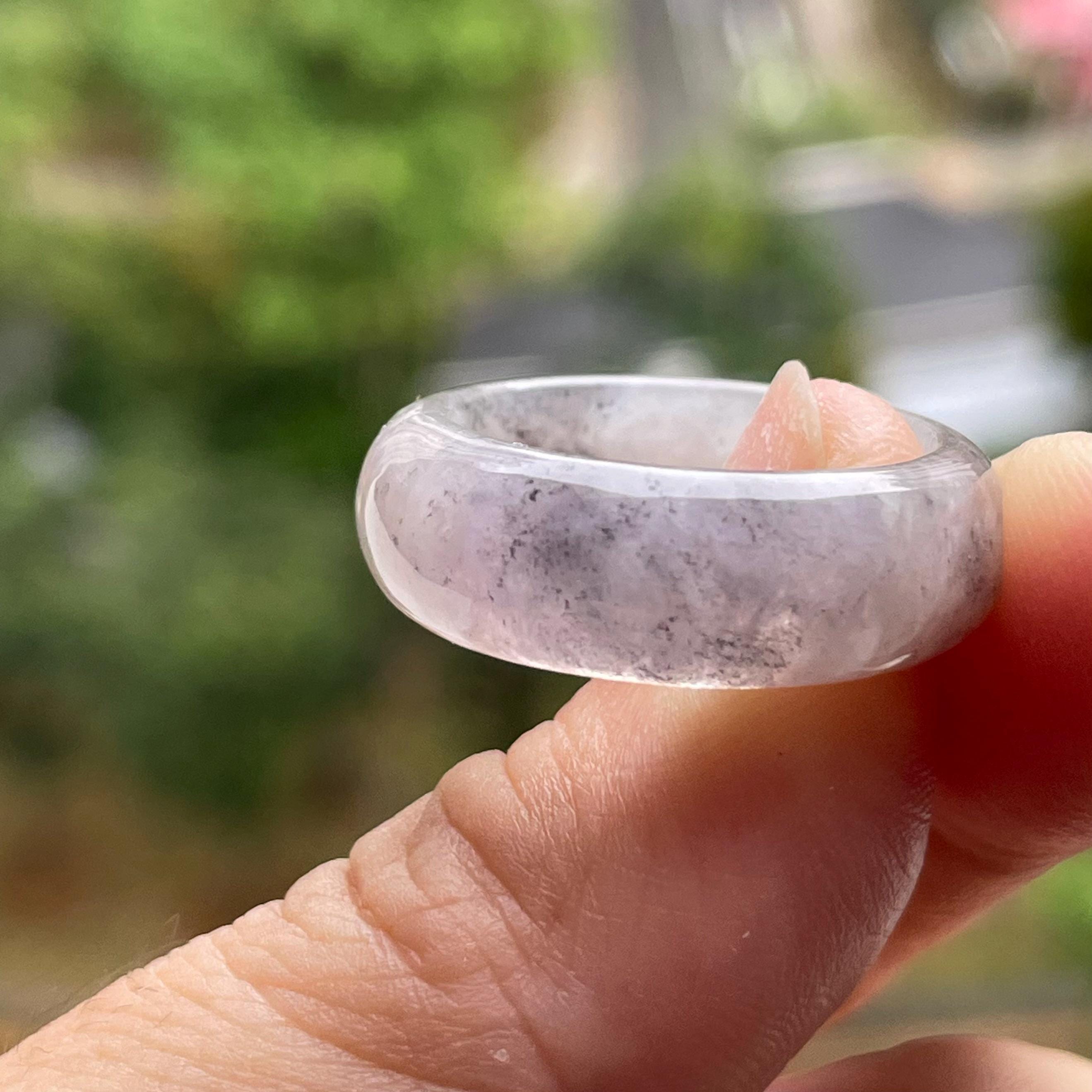 β’ The ring is made with untreated, unheated and undyed jadeite jade from Burma which is categorised as Authentic Type A Jadeite. The main base color is translucent off-white with sprinkled black sesame (natural iron deposit) with a touch of light apple green which enhances the beauty and uniqueness of the rings.