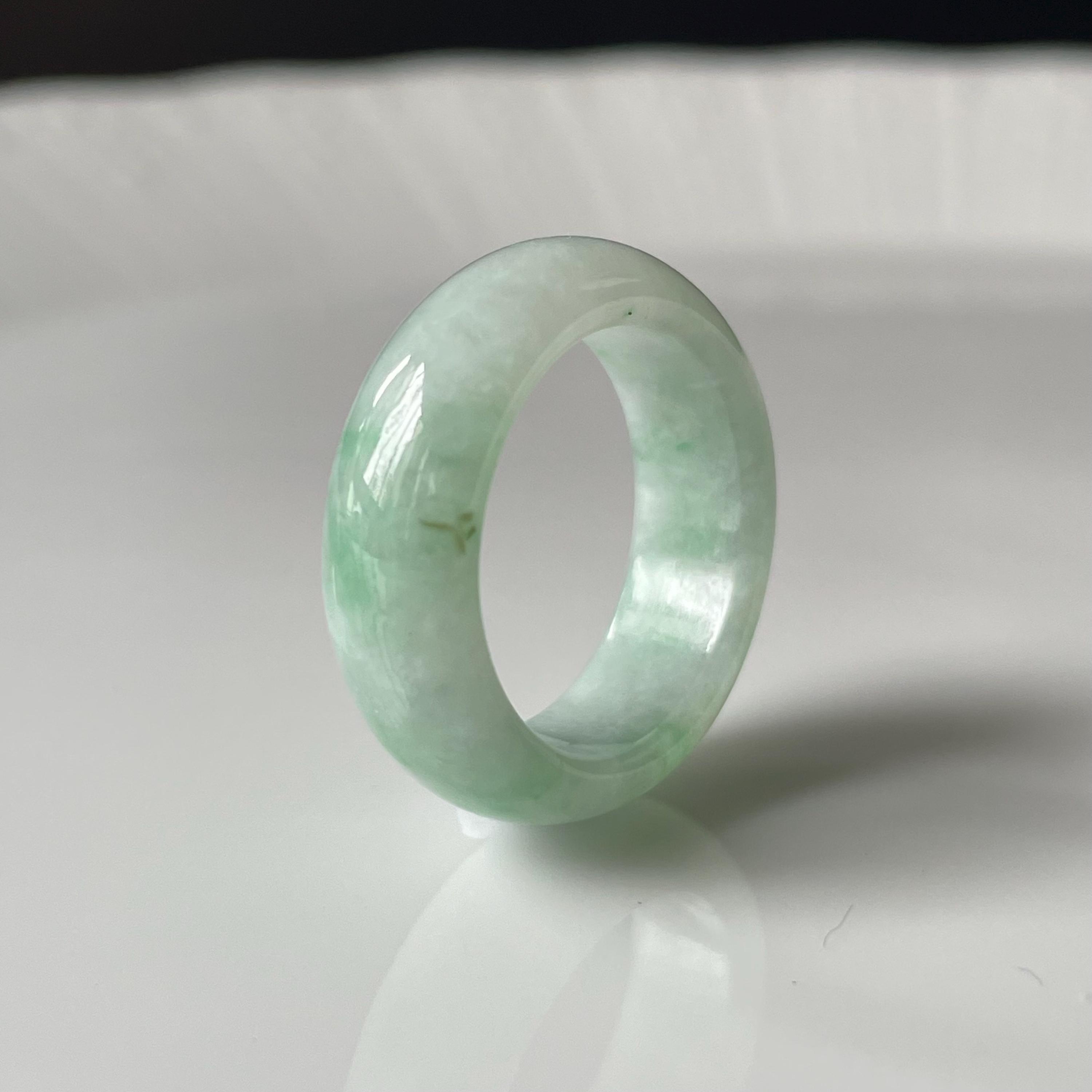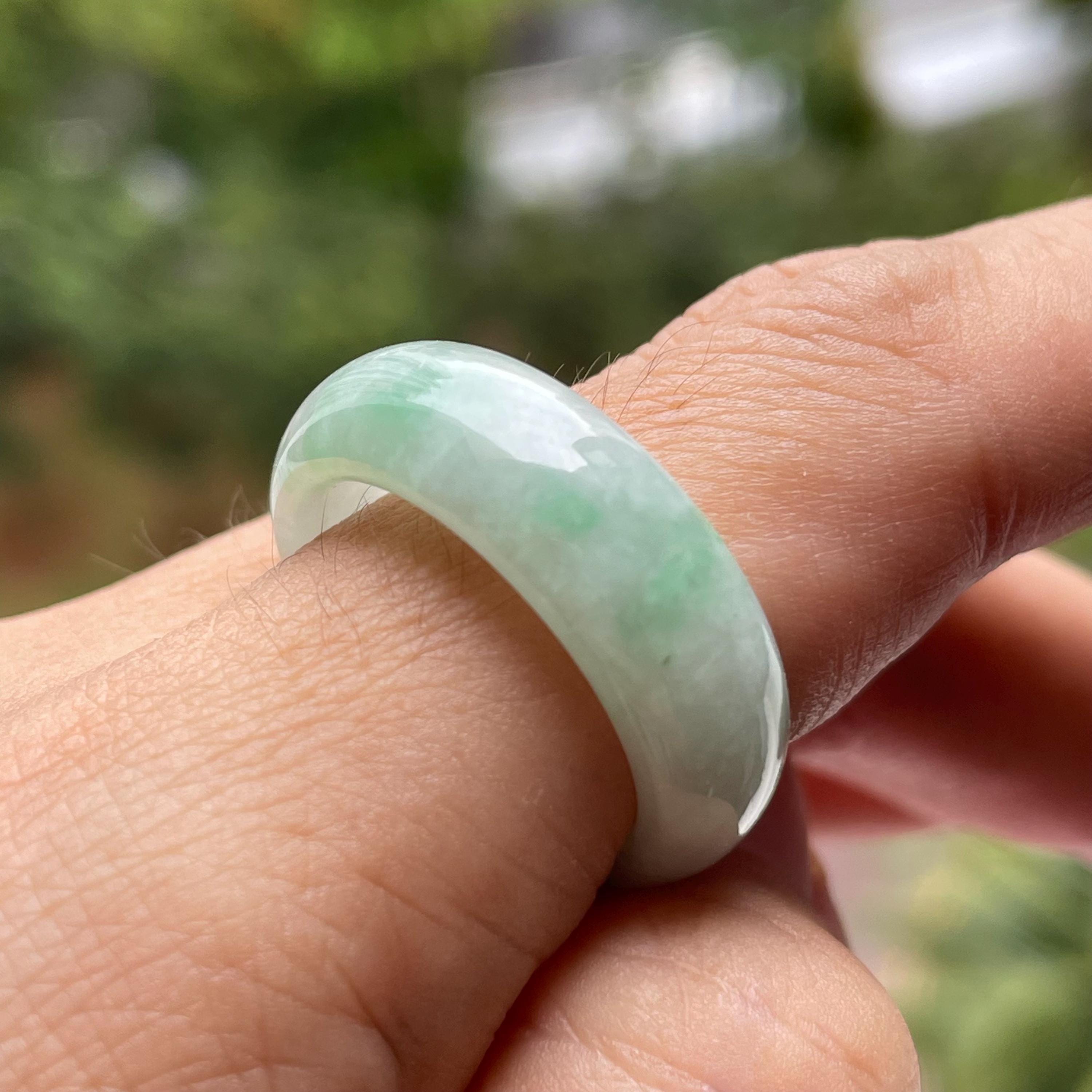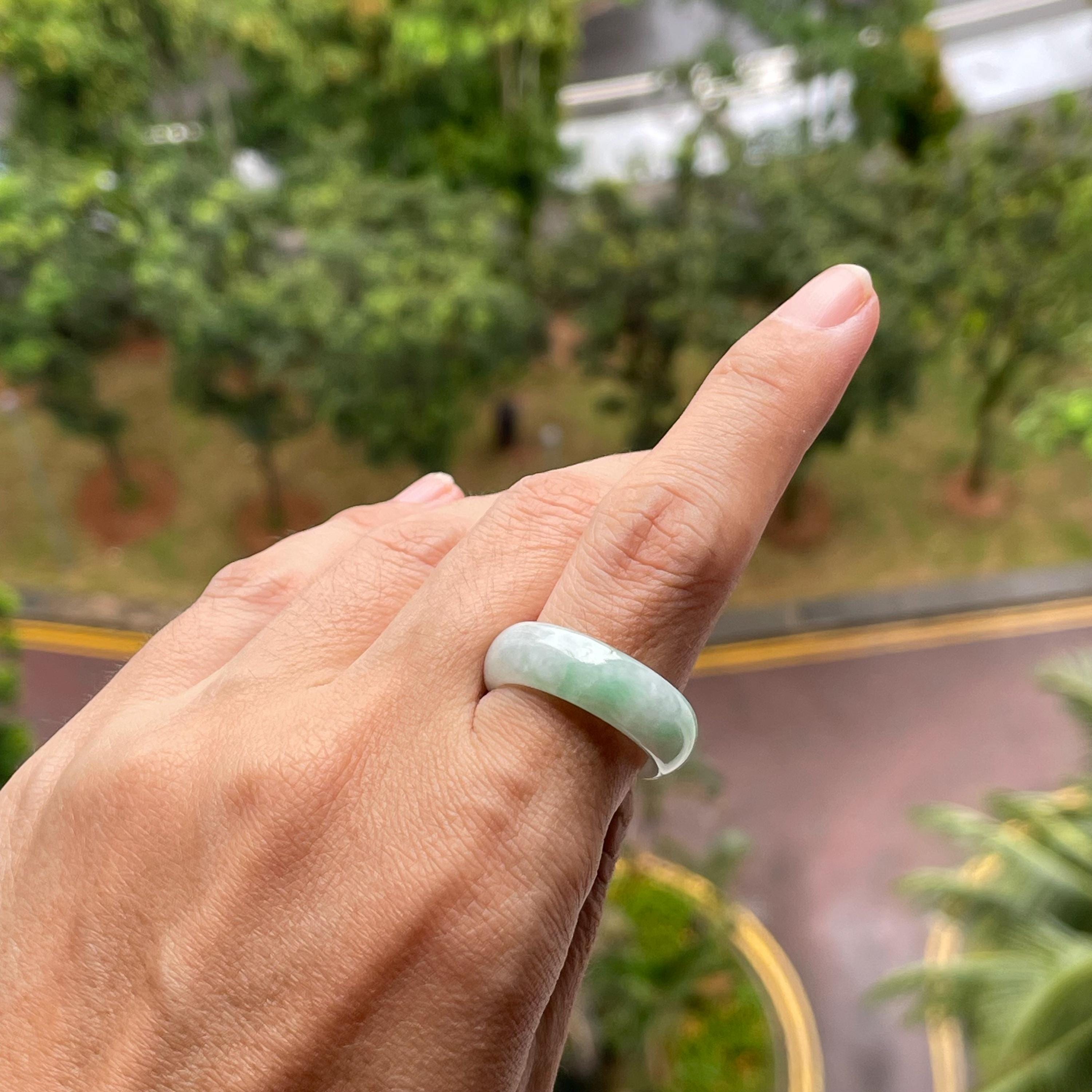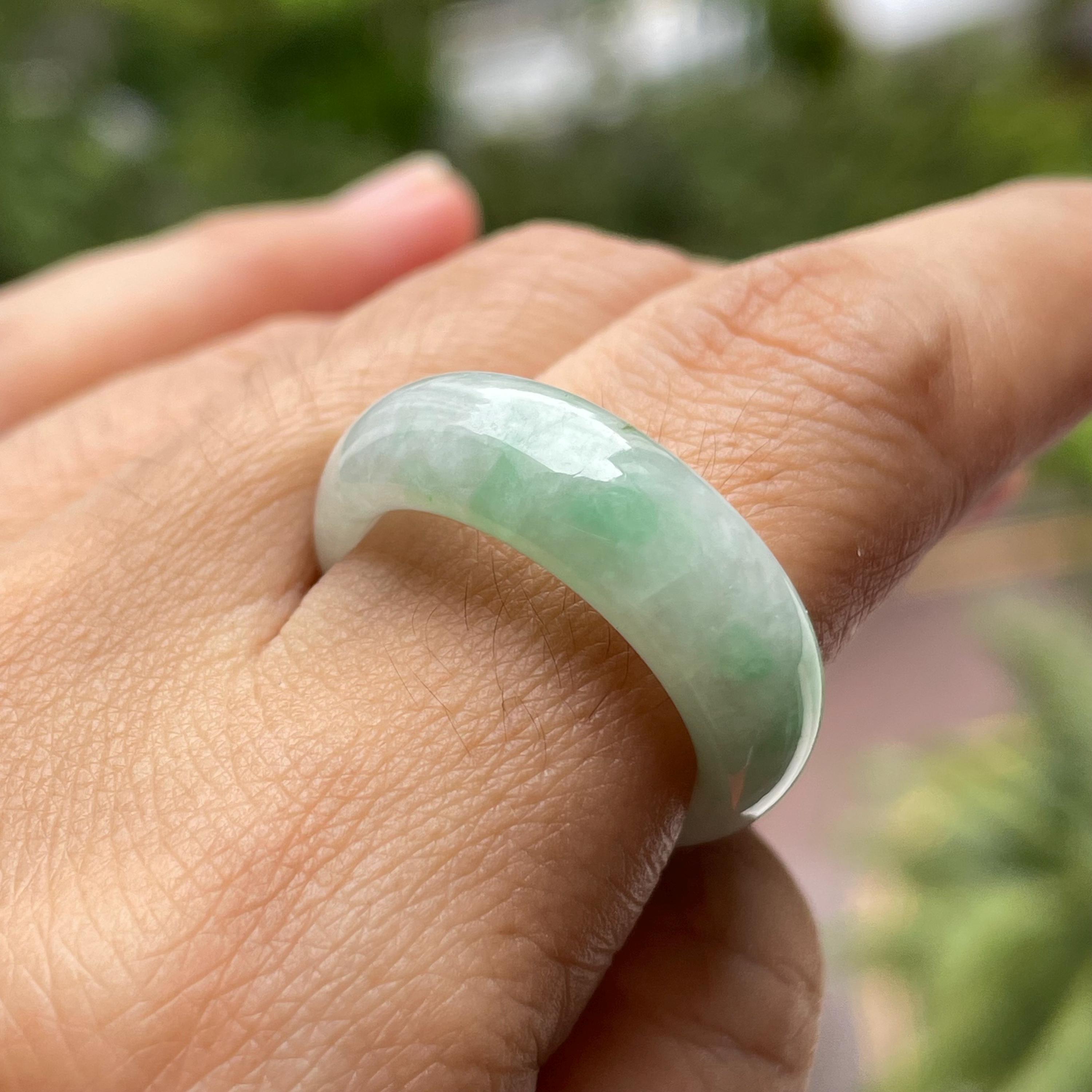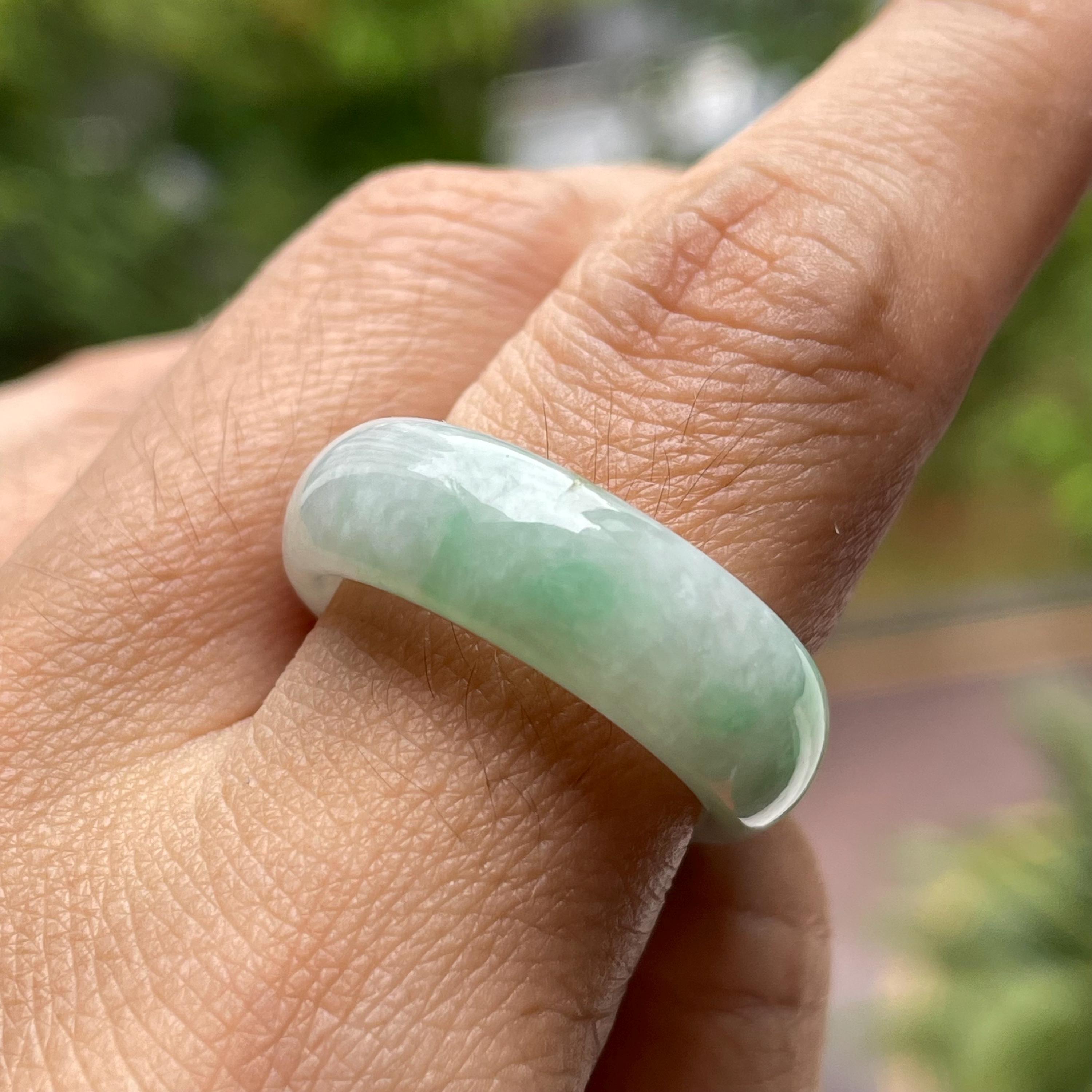 β’ The ring is hand carved from natural Burmese jadeite boulder. It is neither treated nor bleached jade and there is no chemical infilling. Moreover, the soft green color is natural thus it is categorized under Authentic Type A (Grade A) Jadeite.