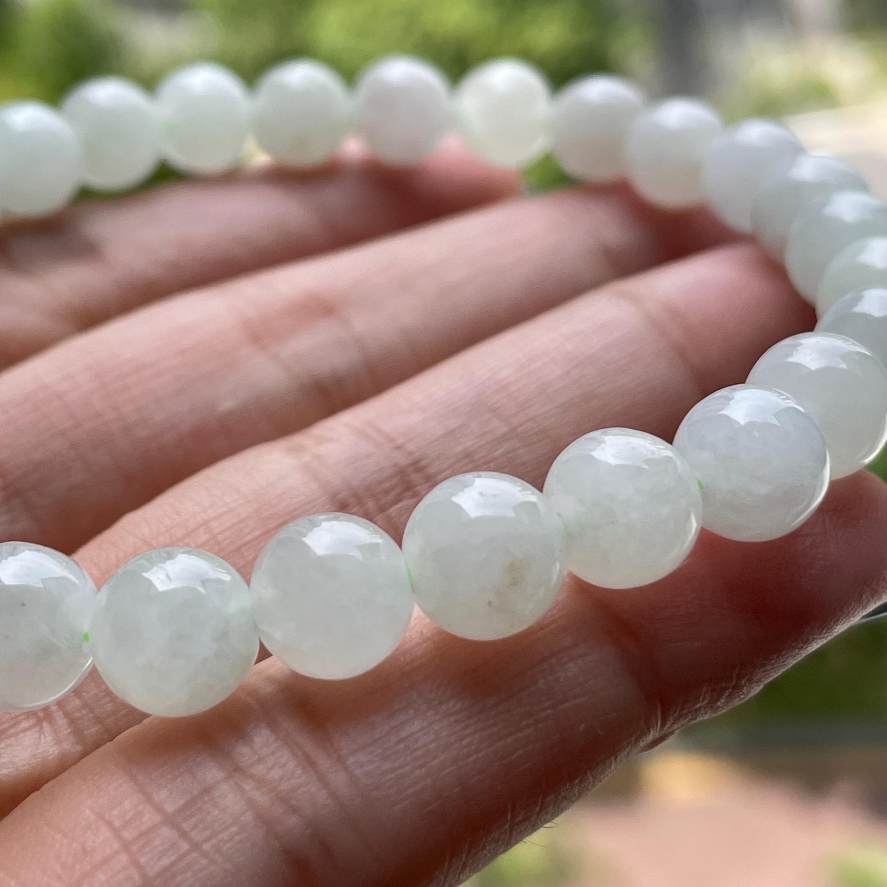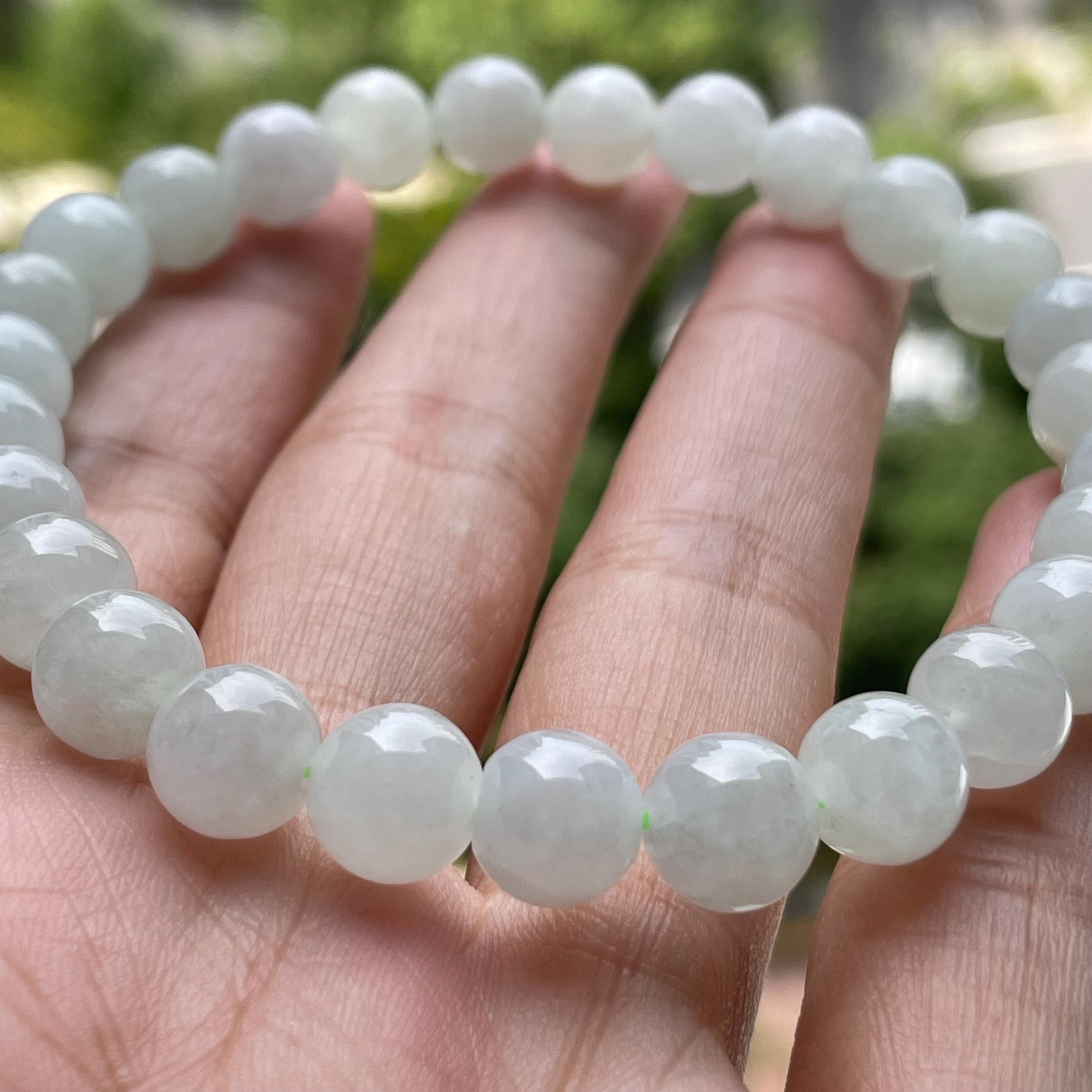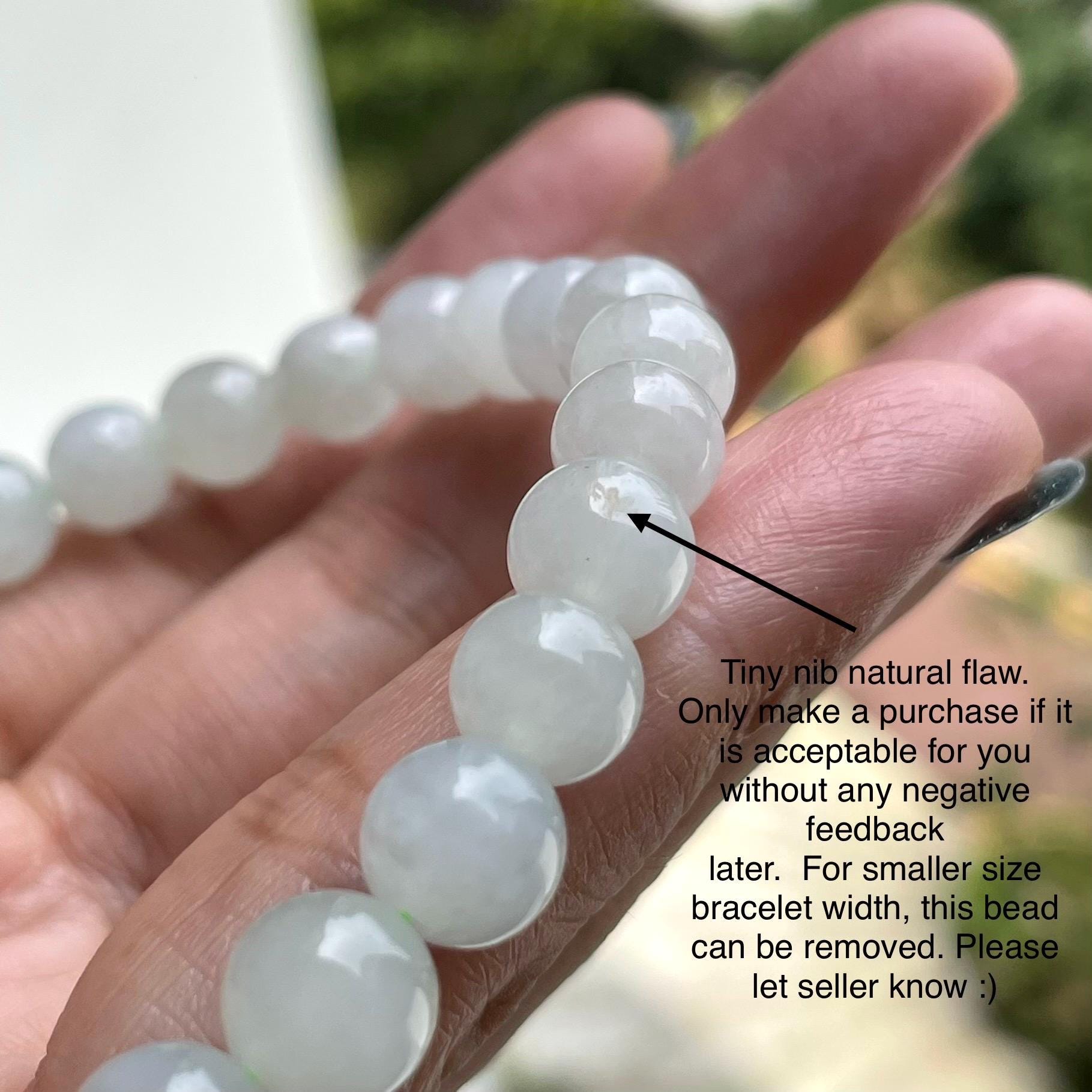 β’ This Jadeite Jade Bead Bracelet is Free of Treatment from Artificial coloring and heating. Beads color are natural and categorized as Type A (Grade A) Jade. Customized adjustment to smaller or bigger wrist size can be chosen in the option.