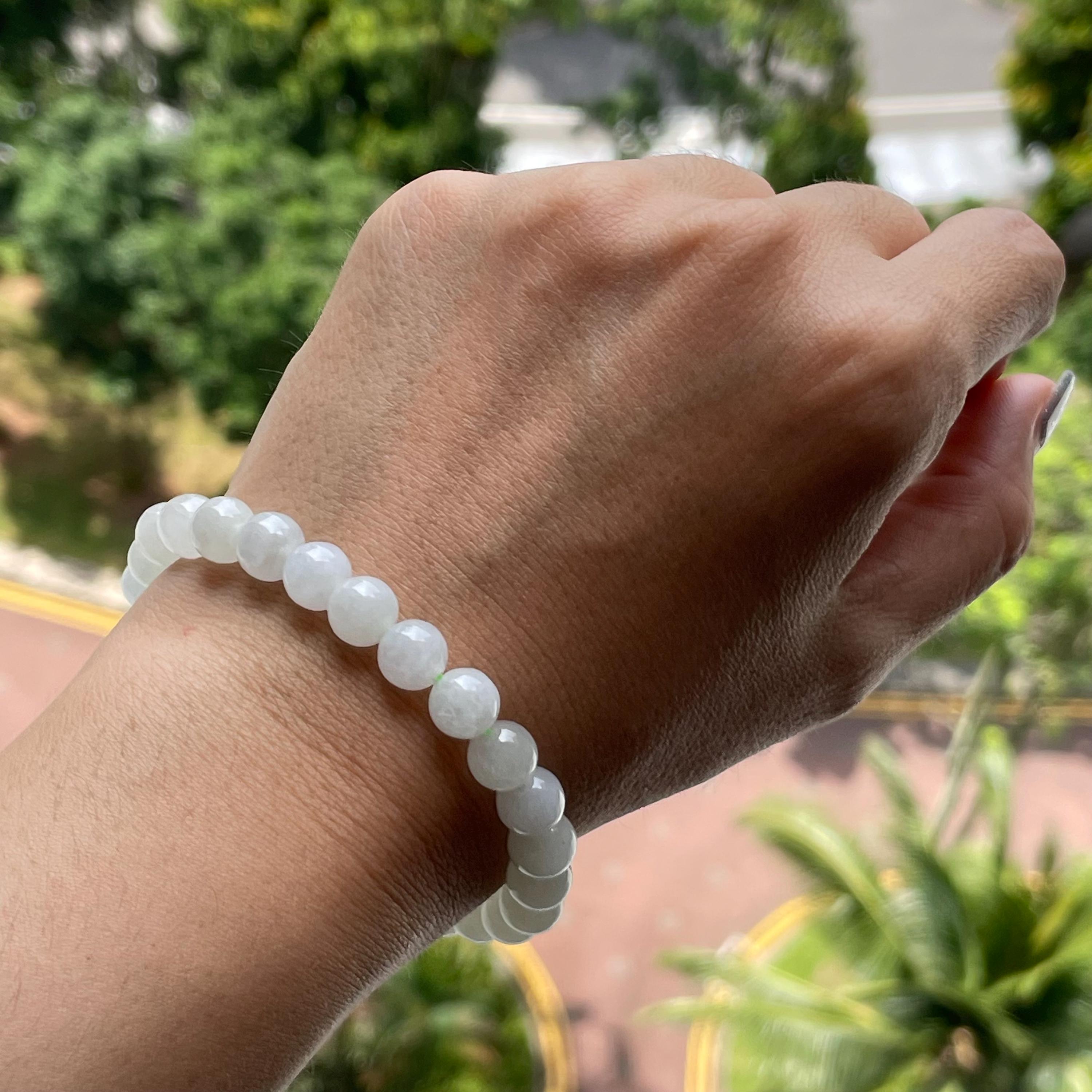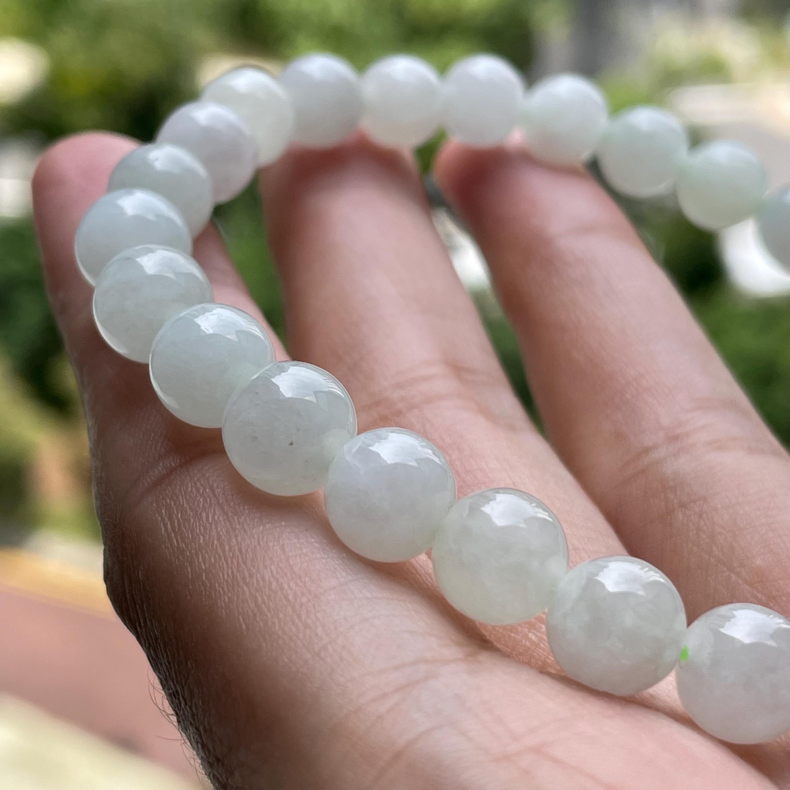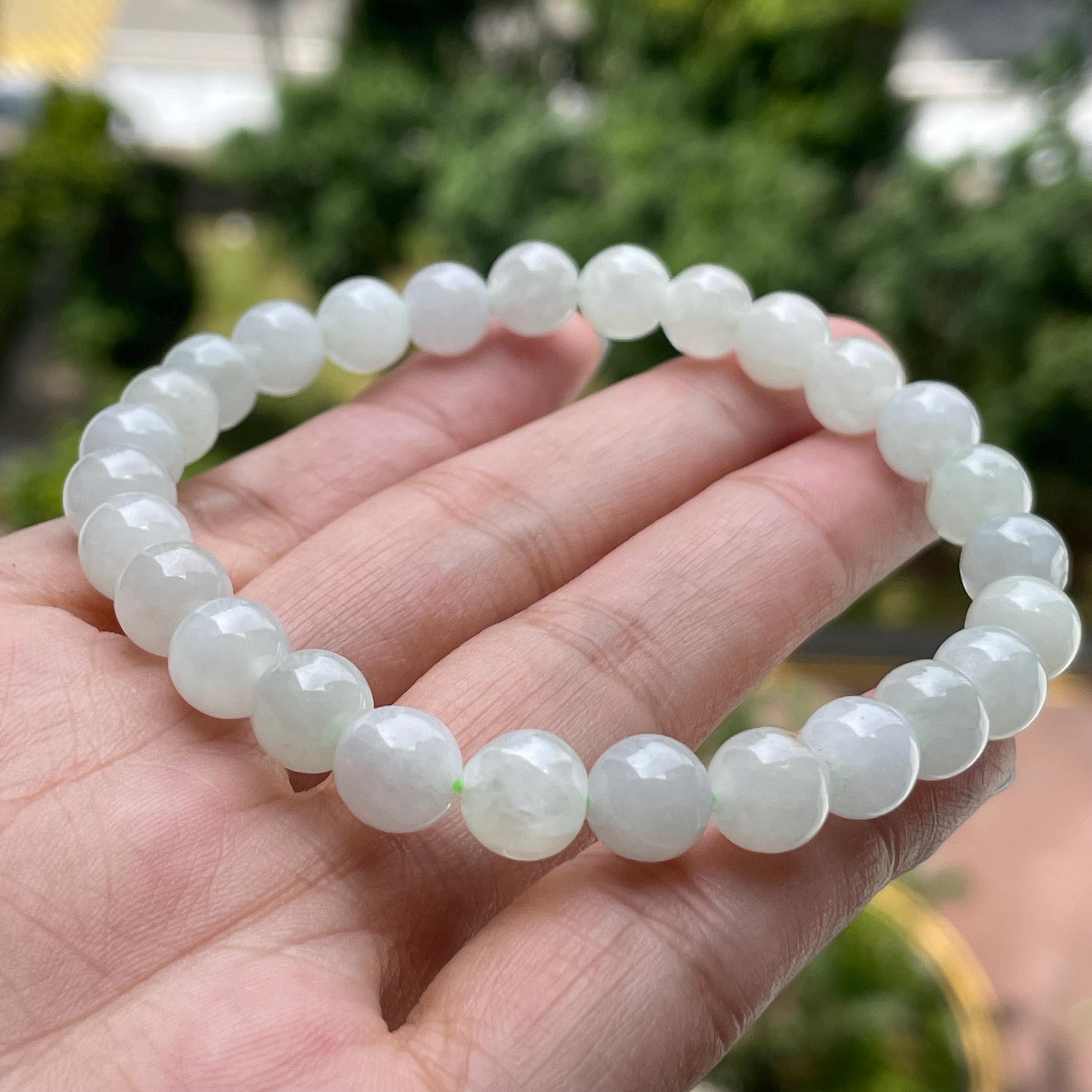 β’ This Jadeite Jade Bead Bracelet is Free of Treatment from Artificial coloring and heating. Beads color are natural and categorized as Type A (Grade A) Jade. Customized adjustment to smaller or bigger wrist size can be chosen in the option.